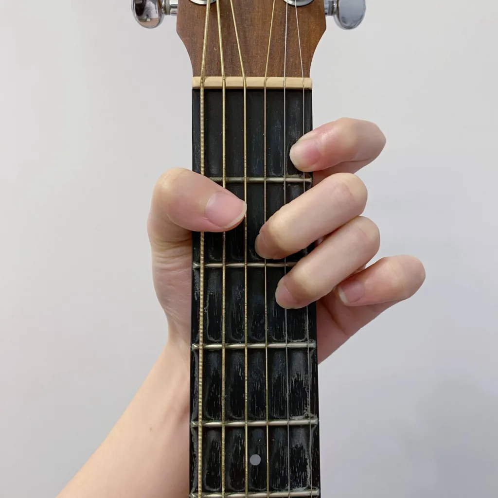 - 按弦時盡量用「手指尖」去按,而不是整個指腹。